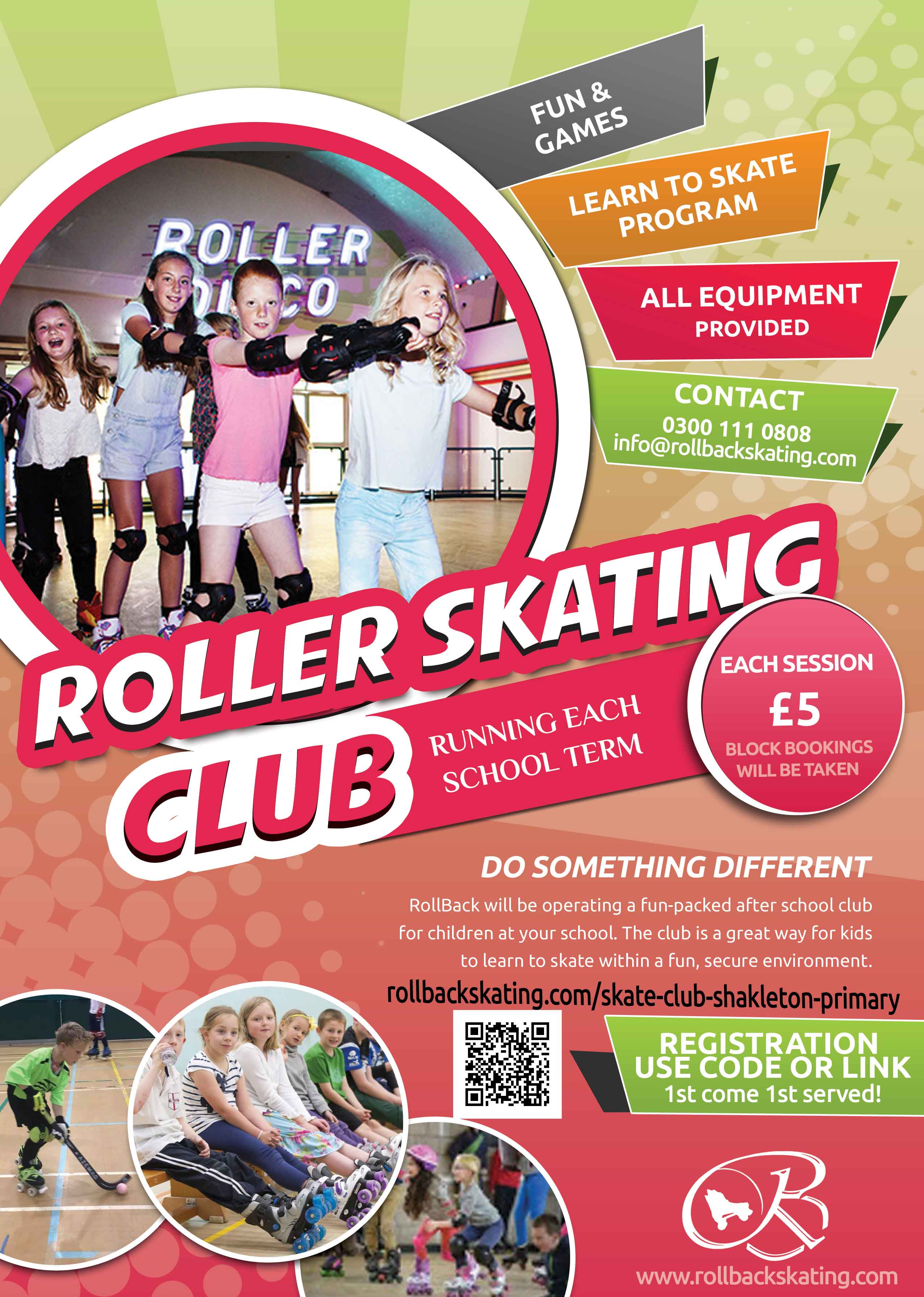 The rollback skating club will run each term at the cost of £5 per child per session (£30 = 6 sessions) to be paid on the date of booking.